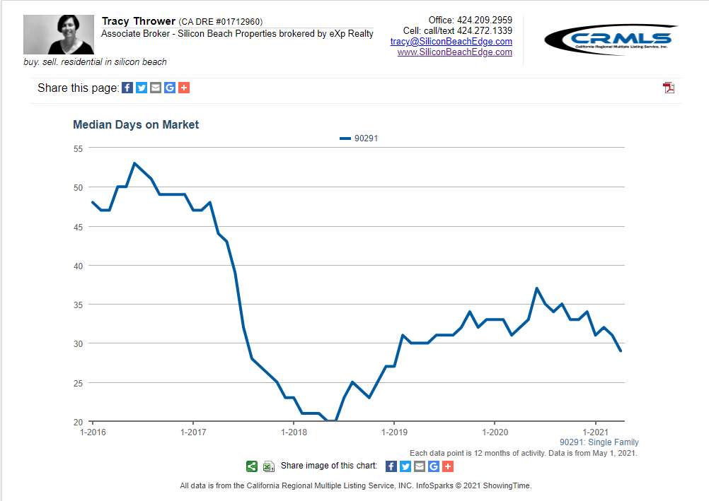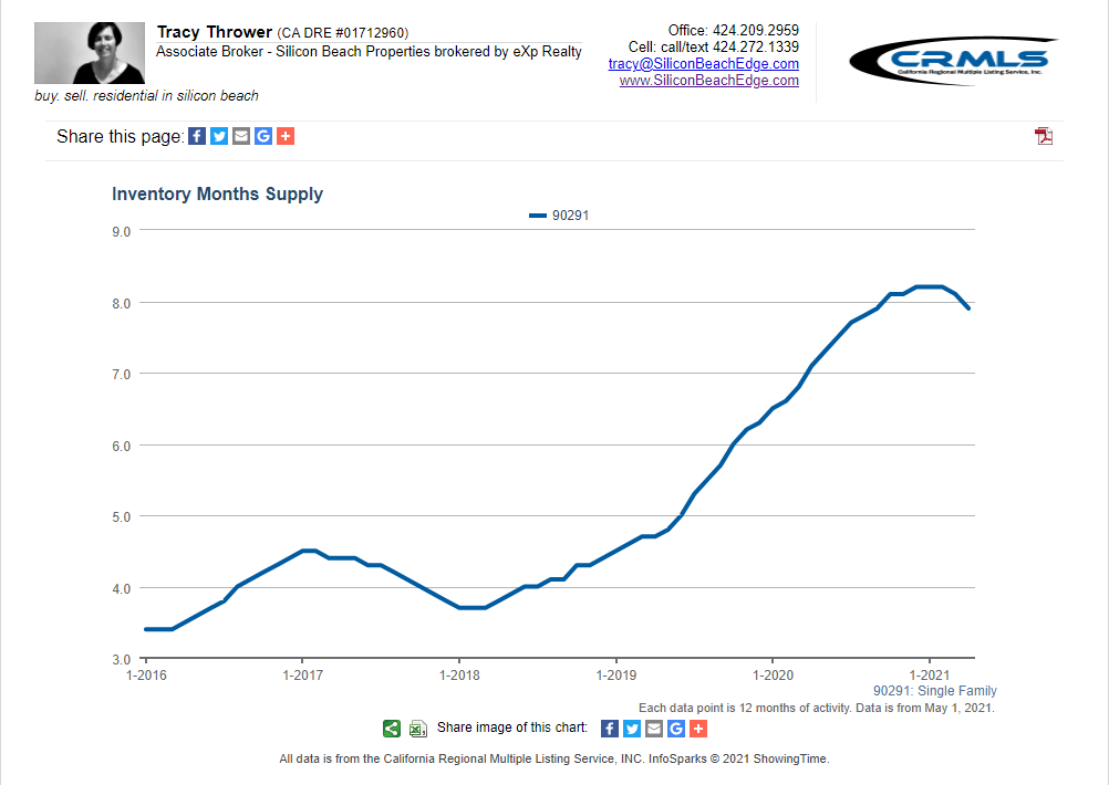 All graphs presented herein show data for the last five years on a rolling 12-month average to smooth the bumps. The data shown is also for single-family homes. If you want condo or combined data for Venice CA 90291, or custom graphs for other areas, just ask!