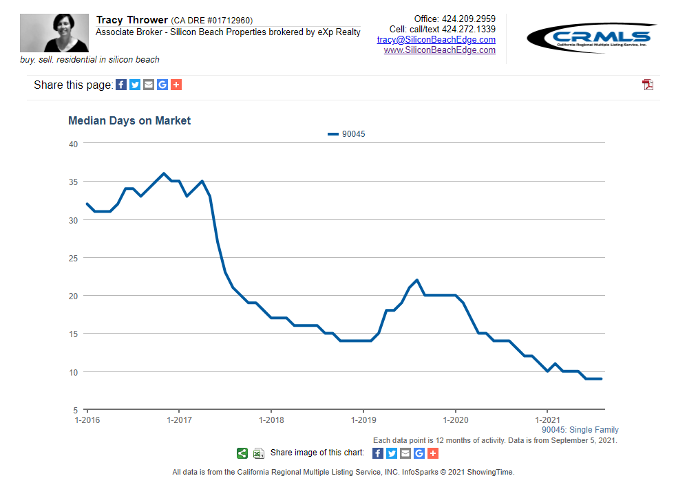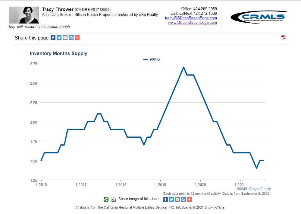 The MLS dropped its August listings data last week and I’m seeing a continuation of the super-tight inventory situation in Westchester 90045. Trendline says → super sellers’ market continues.