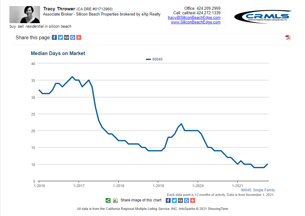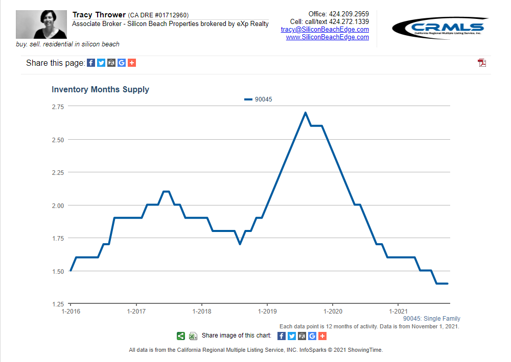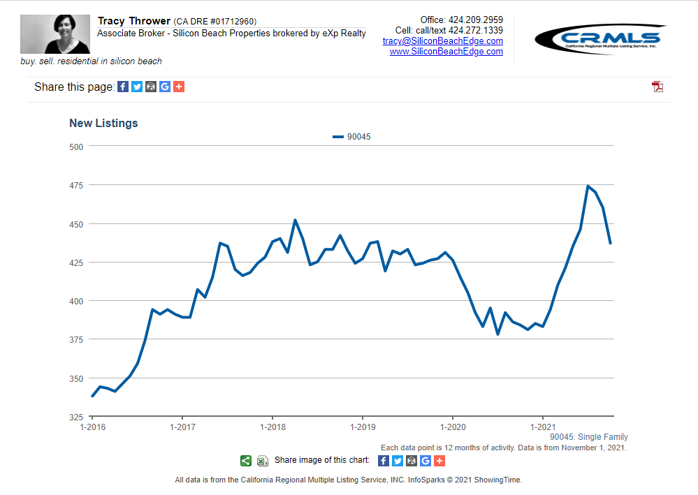 The MLS dropped its October listings data last week and I’m seeing a continuation of the super-tight inventory situation in Westchester 90045. Trendline says → super sellers’ market continues.