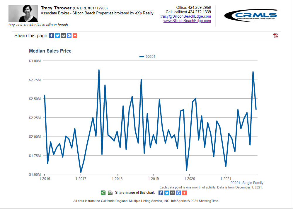 The data shown is also for single-family homes. If you want condo or combined data for Venice CA 90291, or custom graphs for other areas, just ask!