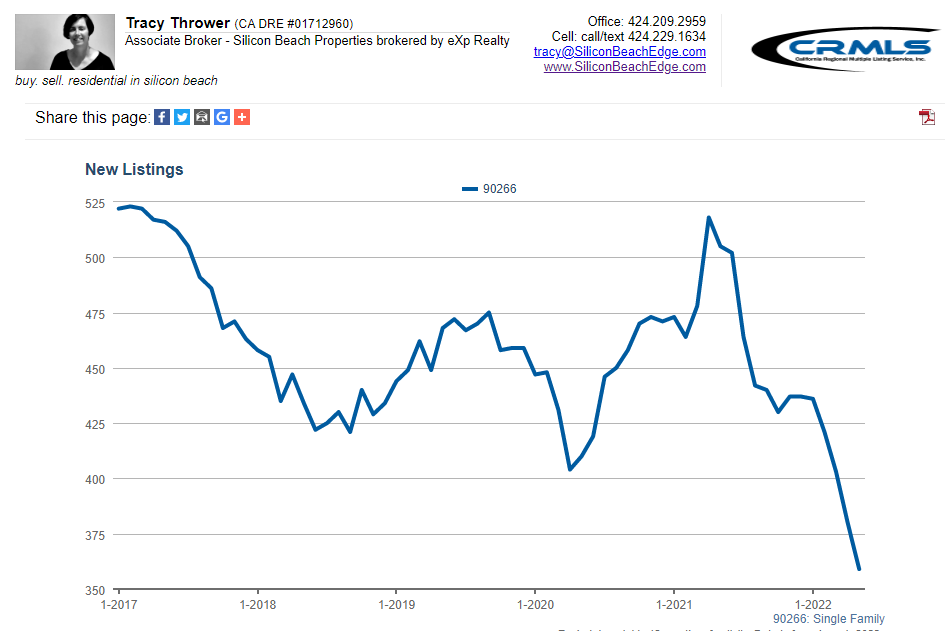 The MLS just dropped its May listings data and I’m seeing a continuation of the same real estate trends we’ve seen for most of the year in Manhattan Beach CA residential real estate – drastically low inventory and another drop in new listings. How’s the market in Manhattan Beach? Trendline says → definitely a sellers’ market.