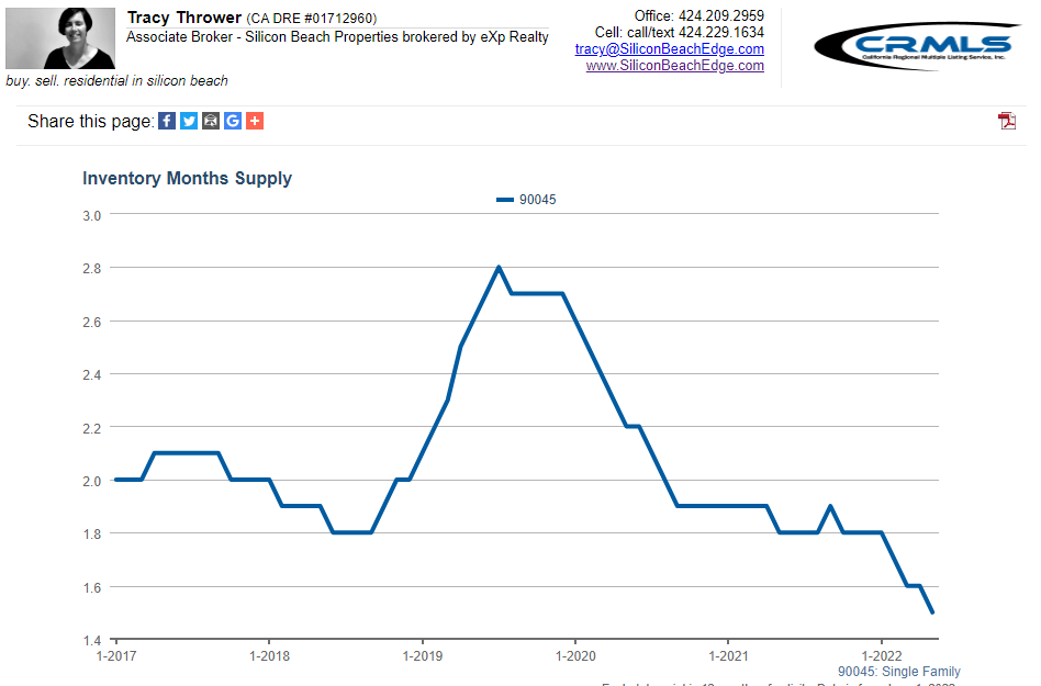 Interest rates are all anybody wants to talk about right now. Will higher rates impact the price story in Westchester? There is still so much demand and Westchester still represents a big bang for the buck in Silicon Beach. My prediction is that demand may soften but it’s not going to evaporate. Excess demand supports a continuing strong sellers’ market.